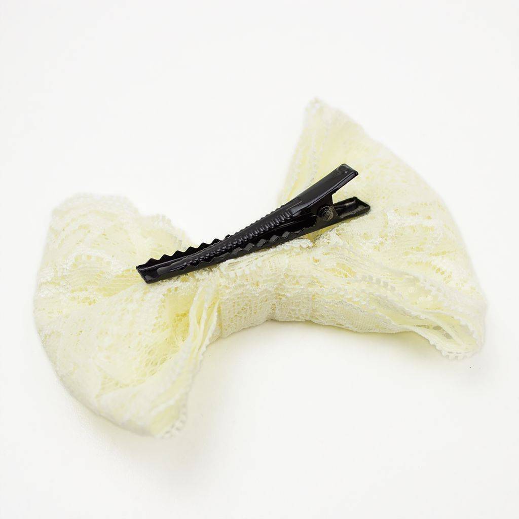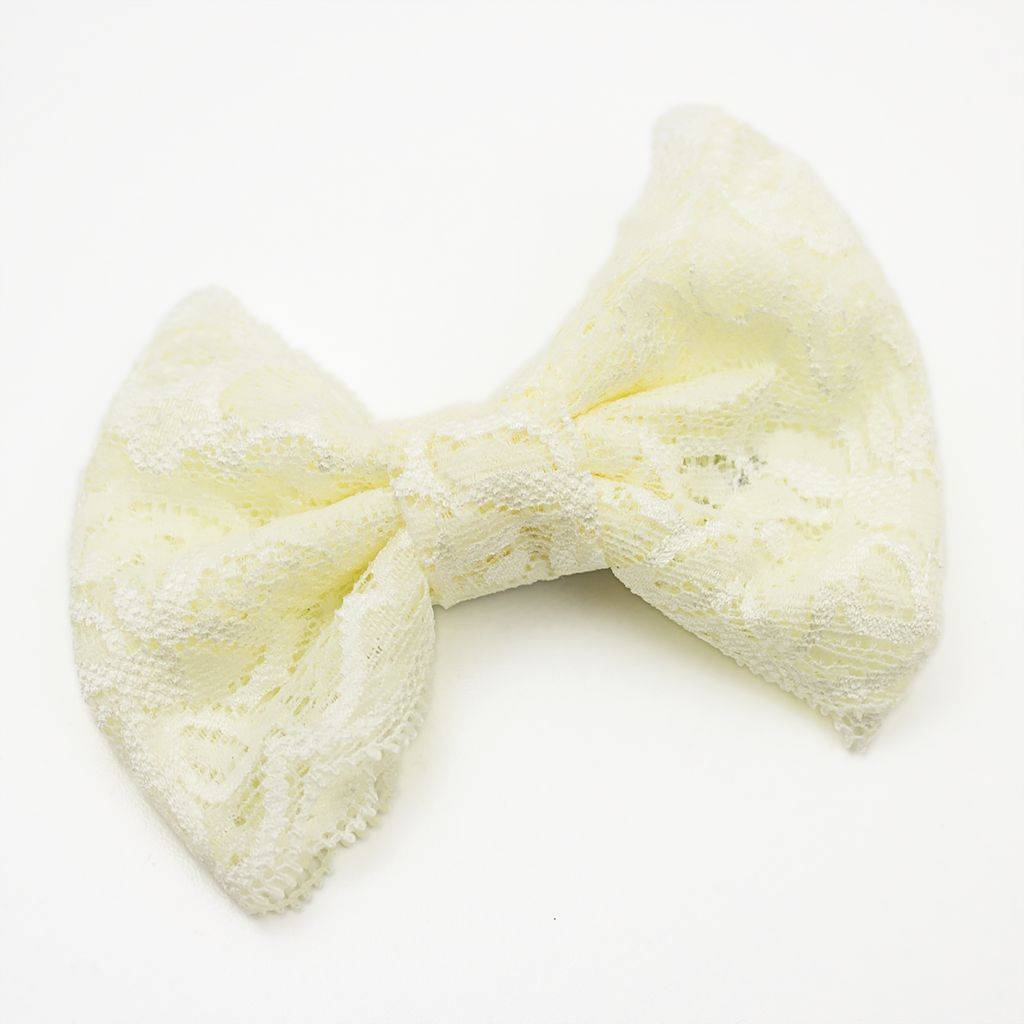 - De strik is 8 cm bij 10 cm en is gemaakt van fijn kant. Ook de knoop in het midden is van kant.