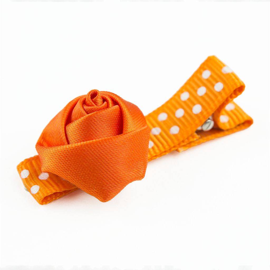 - Mooi oranje gestippeld speldje met een klein oranje satijnen roosje.