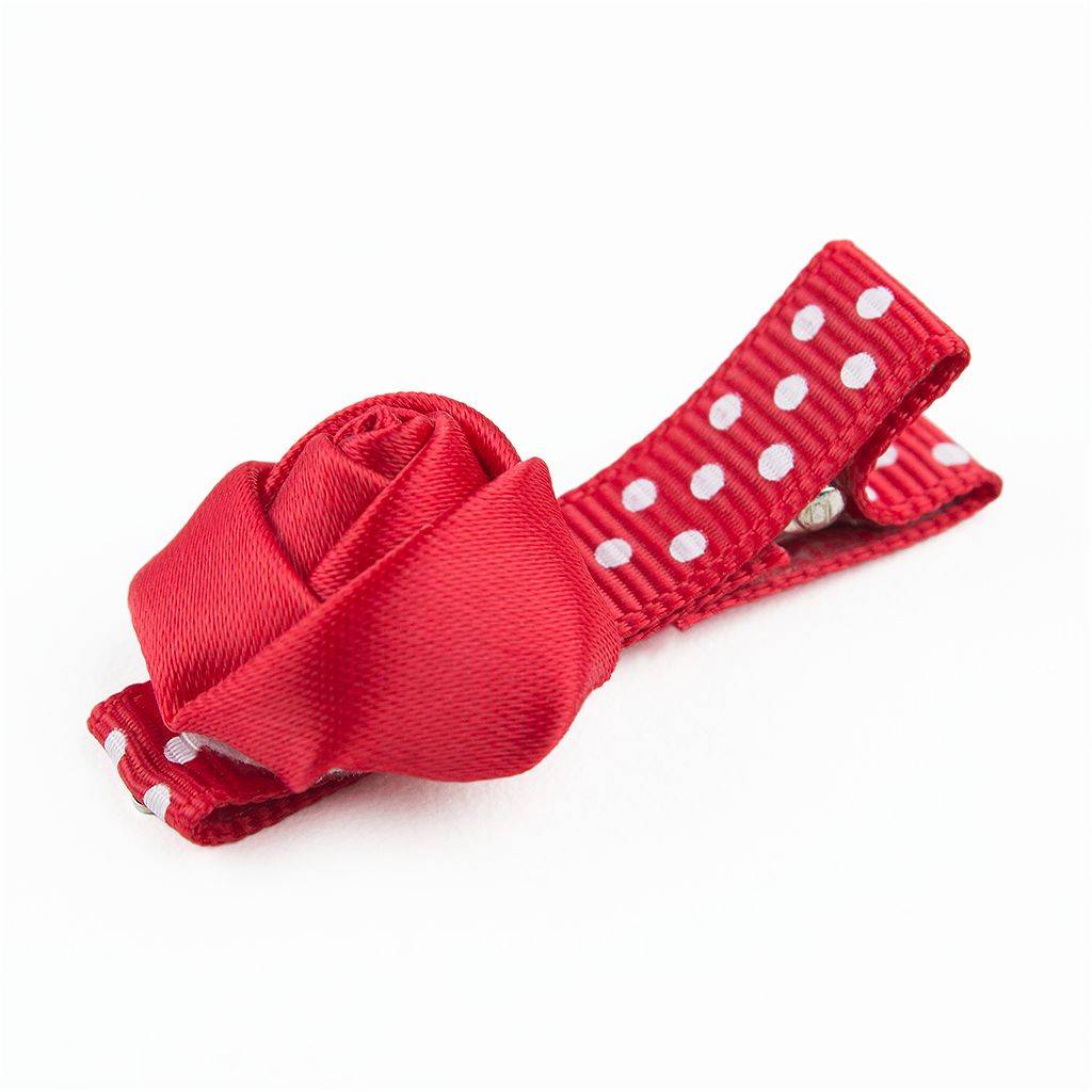 - Mooi rood gestippeld speldje met een klein rood satijnen roosje.