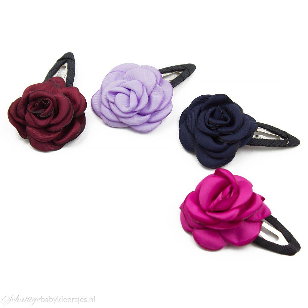 - Schattig zwart haarspeldje met een mooie fuchsia satijnen roos op clip.