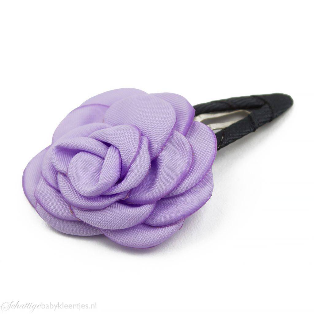 - Schattig zwart haarspeldje met een mooie lila satijnen roos op clip.