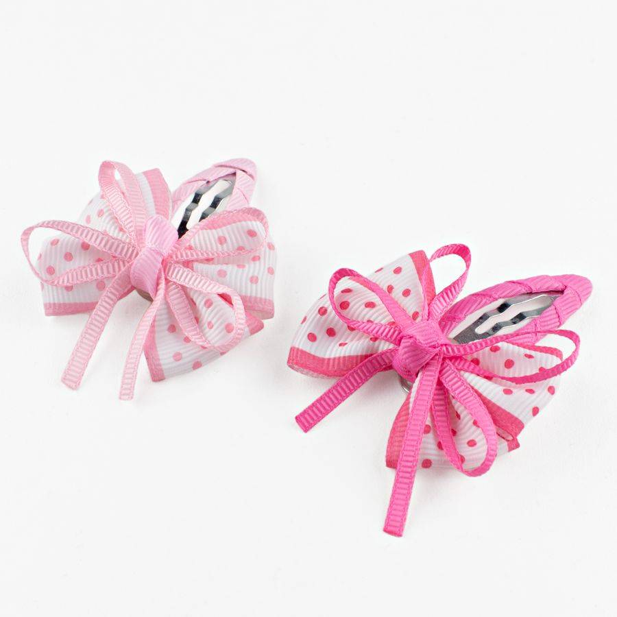 - Te leuk om te weerstaan: een roze haarspeldje met stippelstrik en sliertjes voor uw prinses.