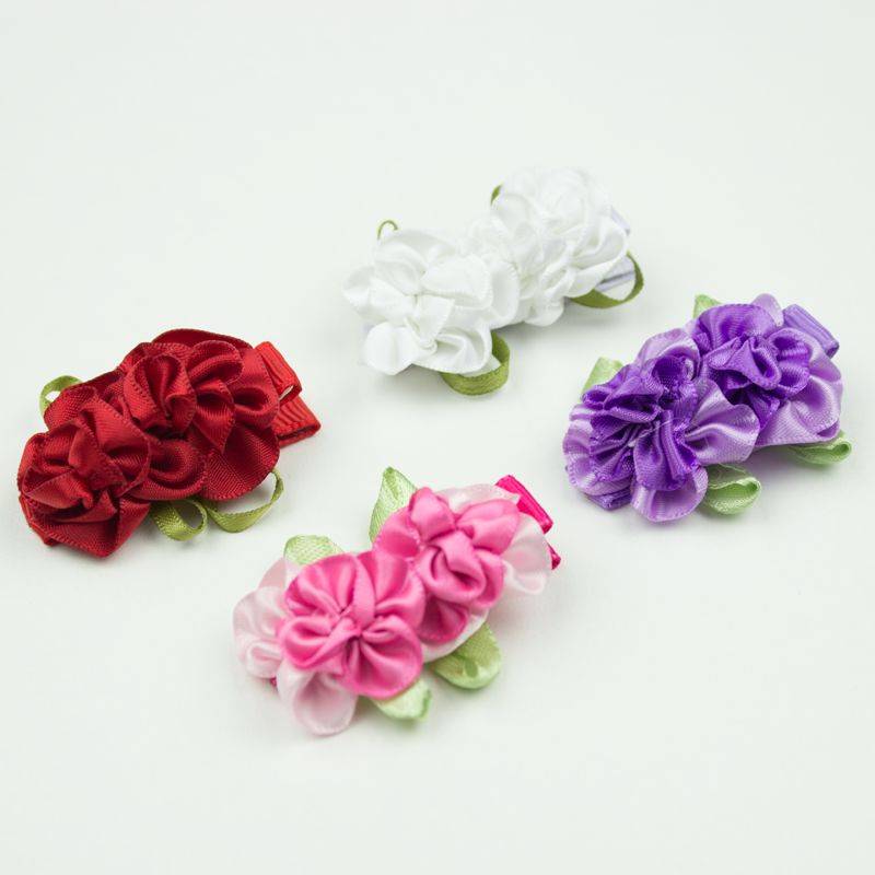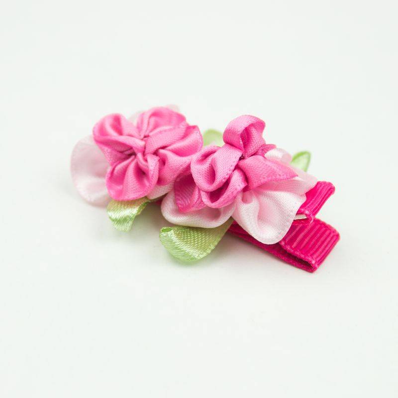 Baby haarspeldje met twee satijnen bloemetjes (roze)