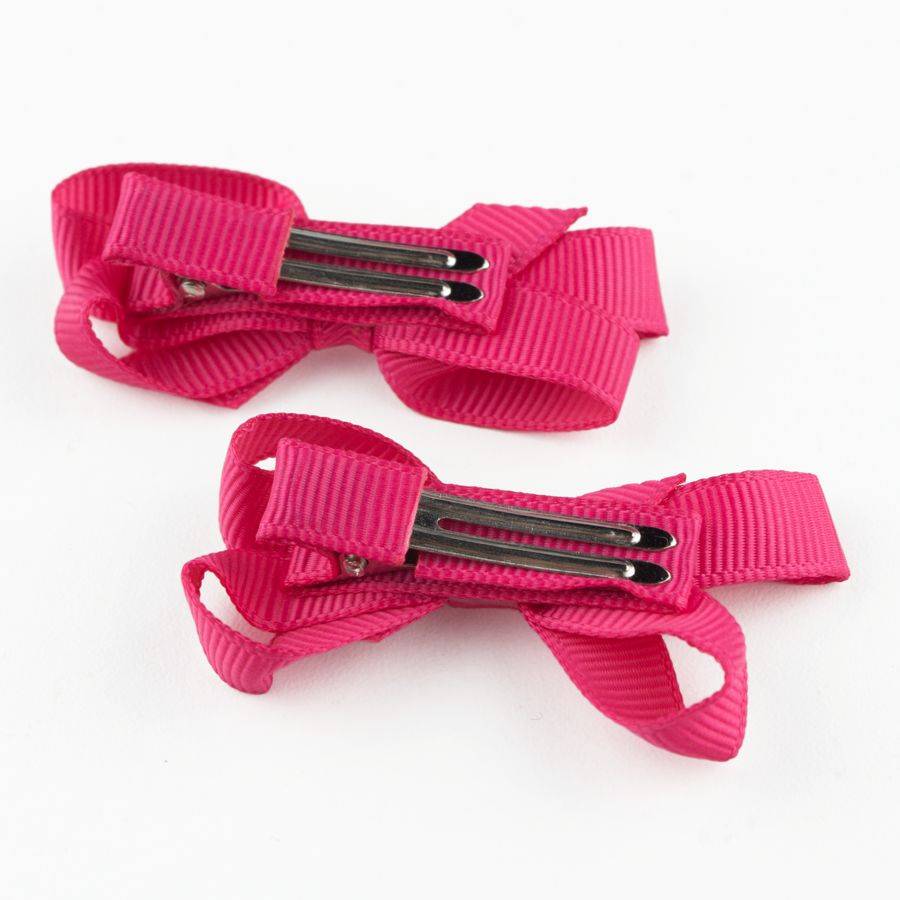 - Een setje van twee mooie fuchsia speldjes met een klein fuchsia strikje.